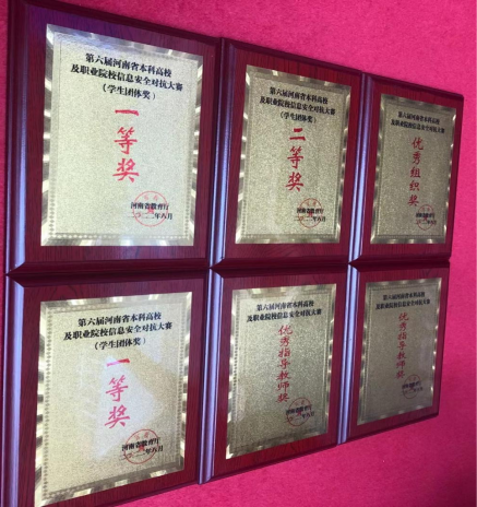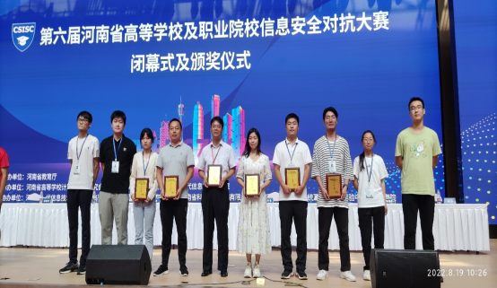 8月19日上午,由河南省教育厅主办的“第六届河南省本科高校及职业院校信息安全对抗大赛”在河南经贸职业公司圆满落幕。公司太阳成tyc33455ccwww共派出两支代表队参加本次比赛,由太阳成tyc33455ccwww经理黄宇达带队,李学威和王晓菲分别作为两队指导教师全程指导,线下分组对抗赛经过一天紧张的角逐后,两队分别以高职组第三名和第五名的成绩获得一等奖,在应急响应赛环节中由何翠萍老师指导的代表队获得应急响应赛二等奖(全省综合成绩前40名代表队参赛含本科队),公司获得优秀组织奖,李学威、王晓菲两位老师获得优秀指导教师奖。李森森、常益翔、罗亚宁等9名员工分获个人线上比赛一等奖。