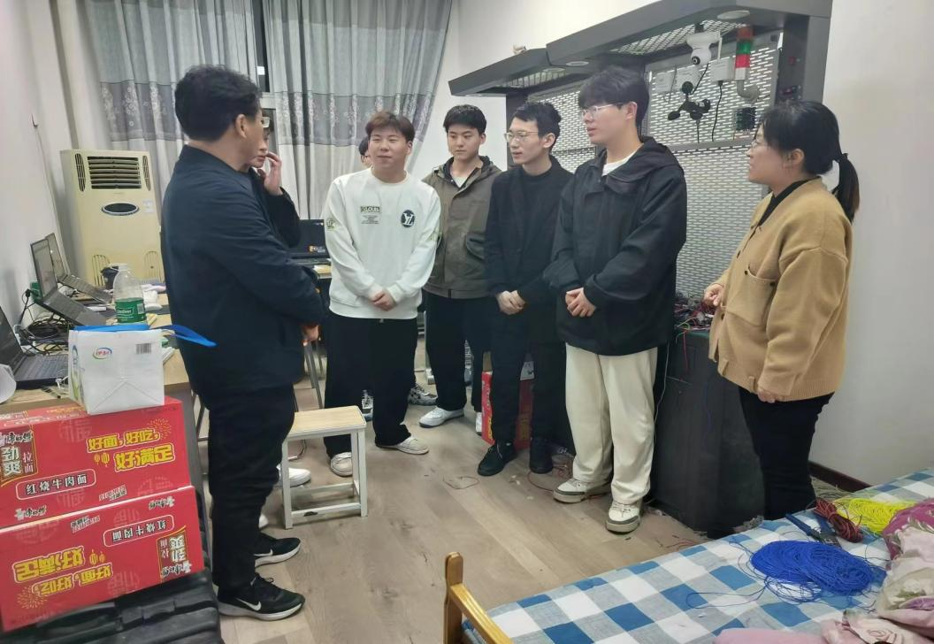 黄经理一行首先观摩了各赛项备赛过程,与备赛师生进行深入交流,认真听取了各个集训赛项的备战情况,详细了解集训中存在的困难以及选手训练和生活情况,然后对备战选手和指导教师的辛勤付出及取得的阶段性成效给予充分肯定,鼓励师生要坚定信心、挖掘潜能,力求在比赛中展现出扎实的专业功底和良好的精神面貌,以更加优异的成绩为公司增光添彩,并送上牛奶、方便面、火腿肠等慰问品,最后强调要认真分析自身差距,强弱项补短板,苦练专业技能,培育强项优势,同时要深入研究赛项规程,不断优化集训方案,劳逸结合科学备赛。