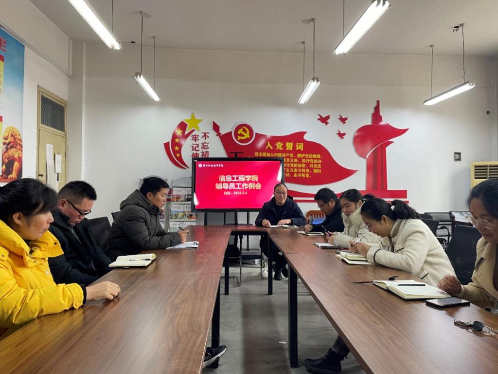 3月4日中午,太阳成tyc33455ccwww召开辅导员工作例会,副经理楚书来,学管班主任张矿伟及全体22、23级辅导员参加会议,会议由楚书来主持。