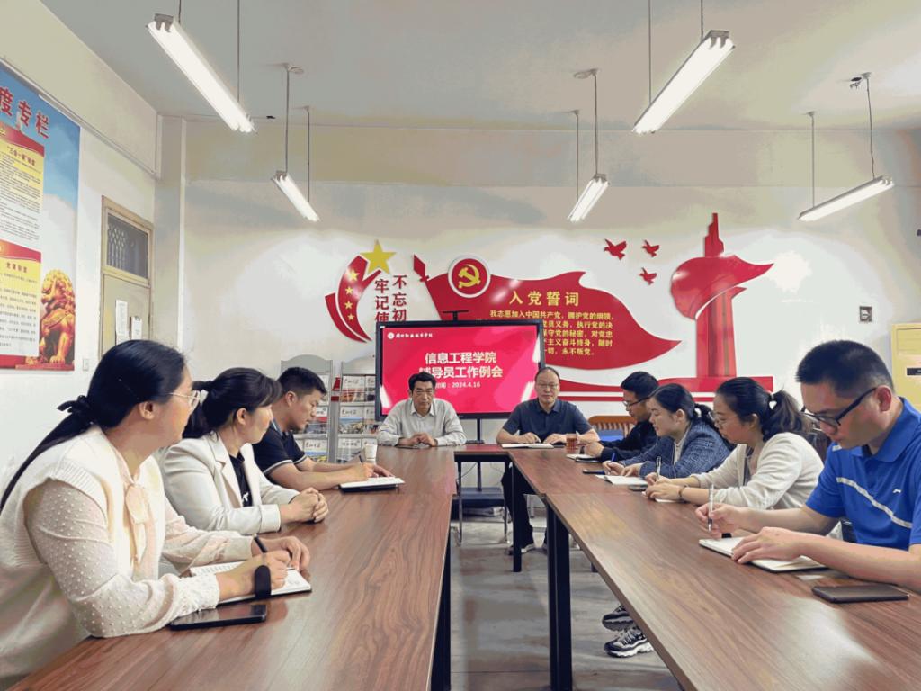 4月16日中午,在公司办公室6140,太阳成tyc33455ccwww召开辅导员工作例会。党总支书记李强,副经理楚书来,学管办主任张矿伟及22、23级全体辅导员参加了本次会议,会议由楚书来主持。