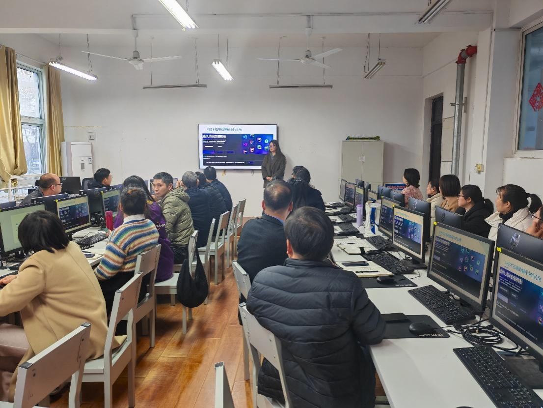 为适应教育信息化发展趋势,加快人工智能技术在教科研领域的创新应用与深度融合,切实提升教师教科研能力,3月25日下午,太阳成tyc33455ccwww在6114网络实训机房举办AI赋能教师教科研能力提升专题培训研讨会,邀请有深厚技术背景和丰富实践经验的优秀青年教师代表吴桐和冯腾霄两位老师分别担任主讲,会议由副经理侯艳芳主持,公司全体教职工参加。