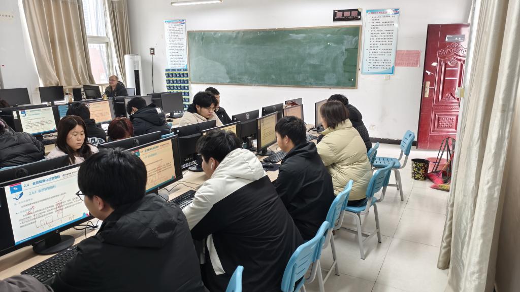 2025年3月5日,为深化课堂教学改革,提升专业课程教学质量,软件教研室今日在F机房组织开展了专题听评课活动。本次活动重点观摩了冯腾霄老师为23级大数据技术2班讲授的《大数据综合项目实战》课程中的"会员数据化运营指标"教学单元,教研室全体成员参与听课并开展教学研讨。