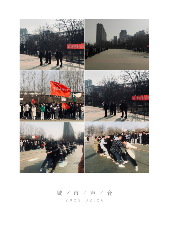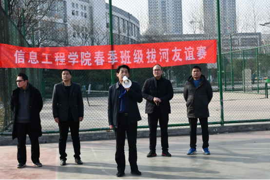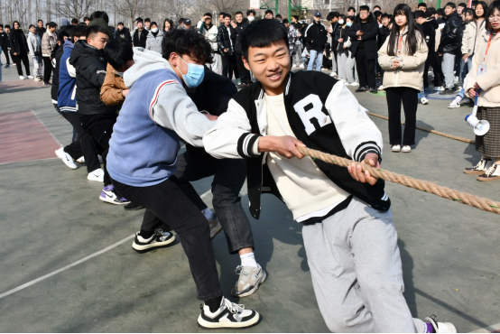 2月26日上午,在公司篮球场,公司举行班级拔河比赛活动,公司党总支书记李强、副经理楚书来、学管办主任王文立、辅导员代表及其20、21级全体员工参加了拔河比赛的开幕式。