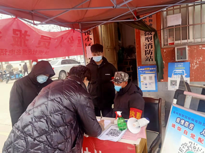 21软件技术1班 刘文阳,在驻马店市汝南县汝悦小区1号院参加卡点登记车辆、填写信息、测量体温和防疫宣传。