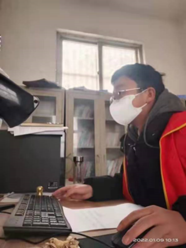 20软件技术2班庞人祎,在西华县田口乡政府进行返乡人员信息录入的疫情防控工作。