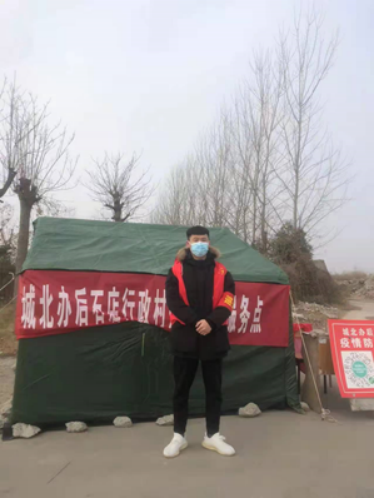 20电子商务技术一班郭宝,在周口市川汇区城北办事处参与防控疫情工作。疫情防控,人人有责。我积极响应公司号召,作为志愿者,参与社区出入口卡点防控措施的落实,为战“疫”贡献自己的力量。