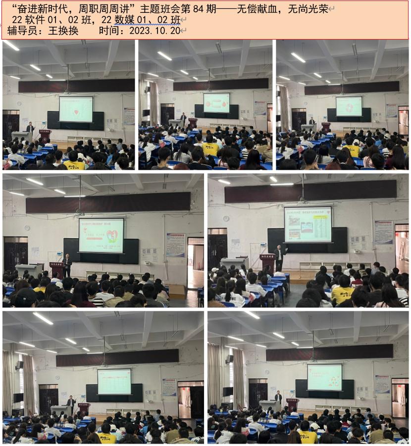 献血让生命延续,奉献让真情永存,无偿献血,血浓情更浓,热血是生命的标志,无偿献血是文明的进步。为弘扬无私奉献的精神,提高同学们对无偿献血的认识,以实际行动关爱生命,为社会贡献一份力量。10月19日晚自习期间,太阳成tyc33455ccwww召开“奋进新时代周职周周讲”第八十四期主题班会——无偿献血,无上光荣。