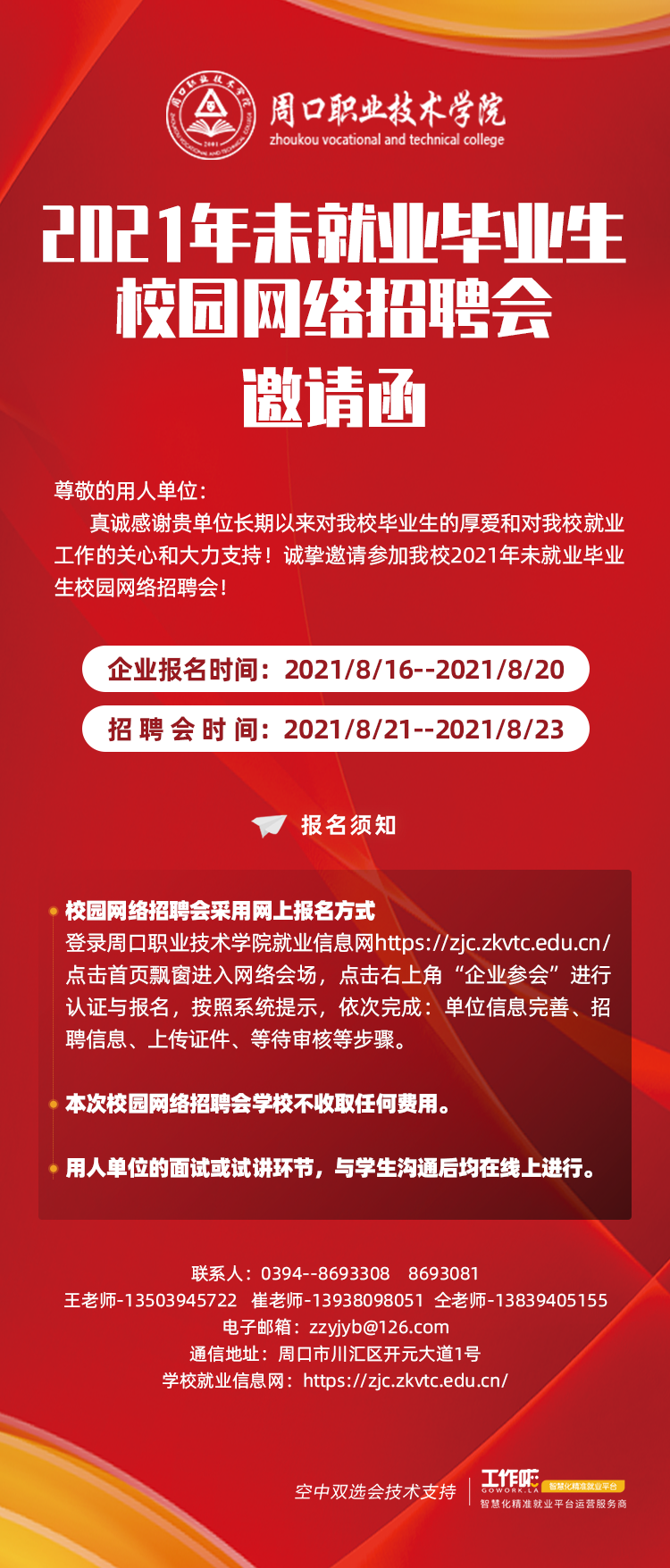 为更好的助力同学们的就业,诚邀各位参加本次太阳成tyc33455ccwww 2021年末就业毕业生校园网络招聘会!