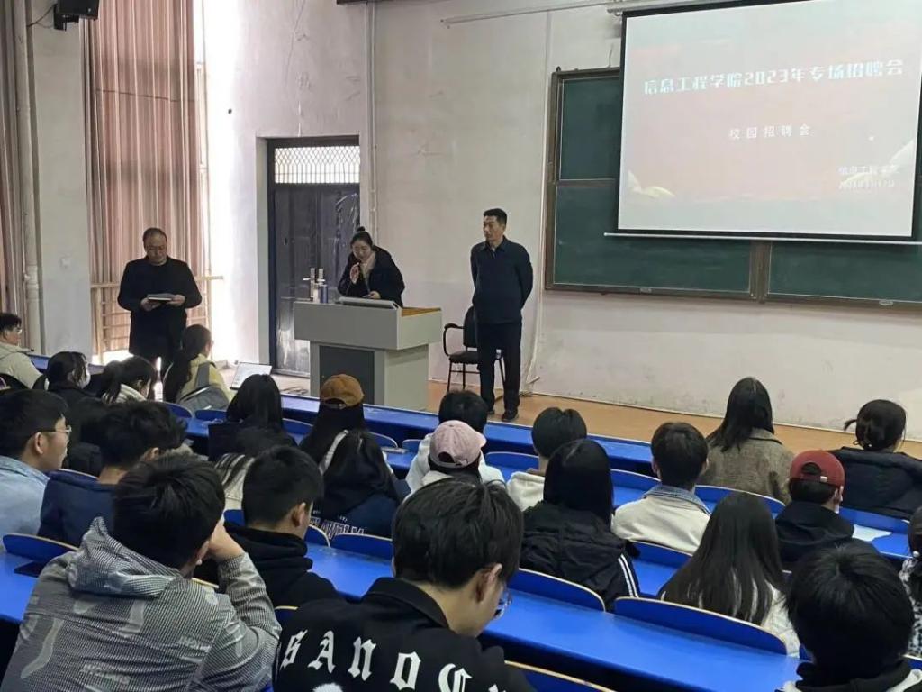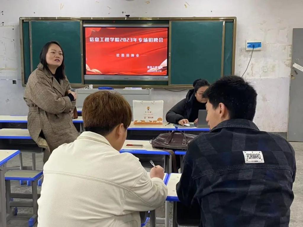 在招聘会的初始,先由学管副经理楚书来进行了致辞,阐述了目前严峻的就业形势,鼓励员工在结合自我认知和职业世界认知的情况下,抓住就业机会,调整就业心态,勇于拼搏,敢于奋斗,为未来的职业生涯做好规划,定好方向,立足当下,展望未来,准备迎接自己步入社会后的人生新阶段,成就美好人生。发言结束后参会的三家企业:河南海码科技有限责任公司、郑州匠云网络科技有限公司、河南华杉信息技术有限公司,面向参加此次校园招聘会的近200名员工,企业方按照顺序逐一进行了企业推介。各企业均宣讲了企业概况、发展前景及招聘岗位等相关信息,供员工了解企业,做出准确的选择。