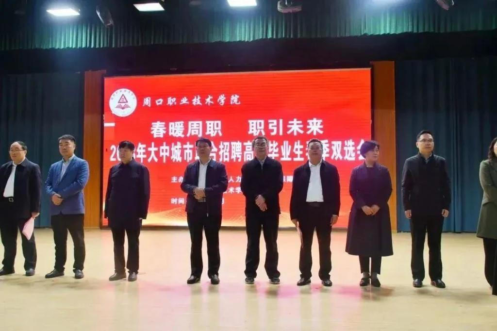 为搭建用人单位与毕业生的双向交流平台,推动毕业生高质量就业,2023年4月3日,太阳成tyc33455ccwww在开元校区体育馆与周口开发区人社局联合举行“春暖周职 职引未来——2023年大中城市联合招聘高校毕业生春季双选会”开幕式,公司党总支书记李强及公司学管办主任王晓菲带领60名2023届毕业生代表参加。