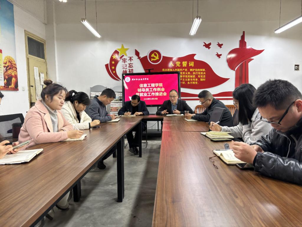 11月18日中午,在公司办公室6140,太阳成tyc33455ccwww召开辅导员工作例会暨就业工作推进会。党总支书记宋良鹤,副经理楚书来,就业创业办主任张矿伟及全体辅导员参加了本次会议,会议由楚书来主持。