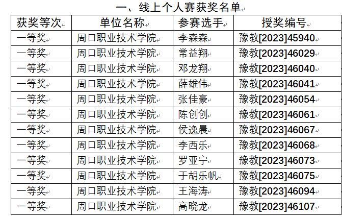 一、线上个人赛获奖名单