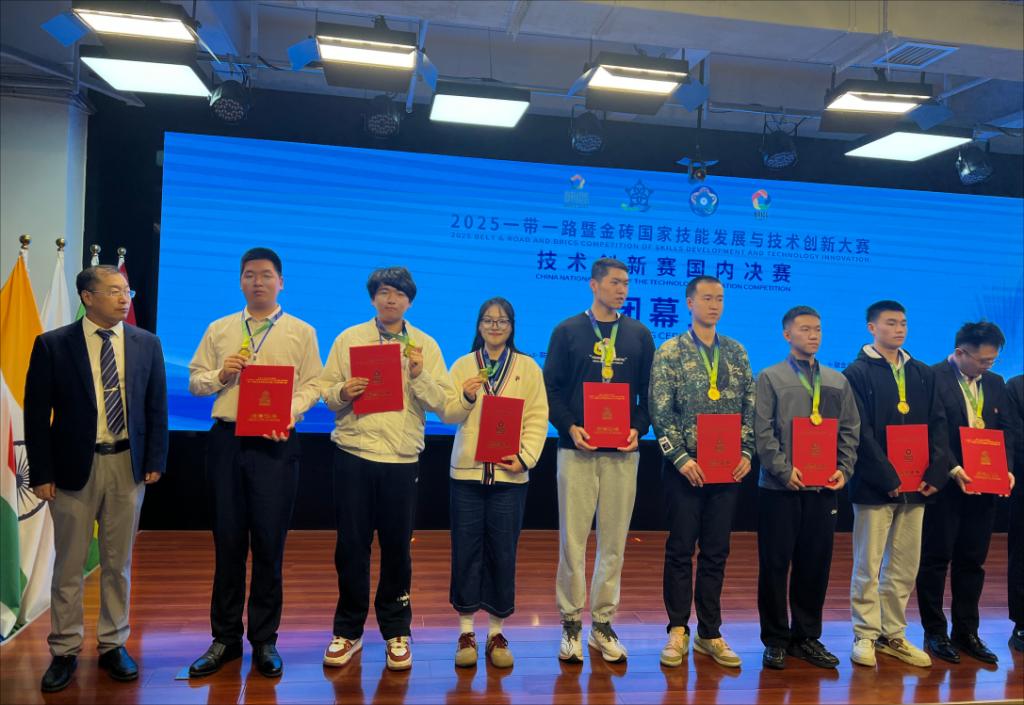 据了解,本届大赛由金砖国家工商理事会中方理事会、金砖国家工商理事会技能发展工作组(中方)提出并发起,“一带一路”暨金砖国家技能发展国际联盟、教育部中外人文交流中心、“一带一路”暨金砖国家技能发展与技术创新培训中心共同主办。该赛事旨在为金砖国家搭建人才选拔通道,提升人才培养能力,服务先进制造等领域,推动金砖国家技能发展。来自全国各地的900多个企业、科研机构和公司的项目踊跃参加本次赛项,赛道广泛涵盖先进制造、数字医疗、绿色能源、人工智能、虚拟仿真、数字农业等10个方面。经过严格的网上和现场评审,最终共有319个项目获得国赛奖项,其中金奖32项、银奖64项、铜奖104项。